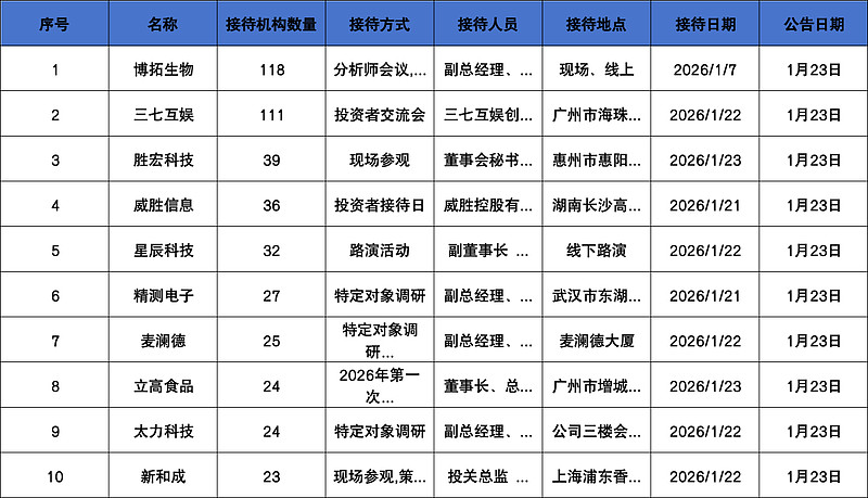 重点机构:泓德基金、华夏基金、嘉实基金、天弘基金、兴证全球基金、中欧基金、富国基金、运舟私募