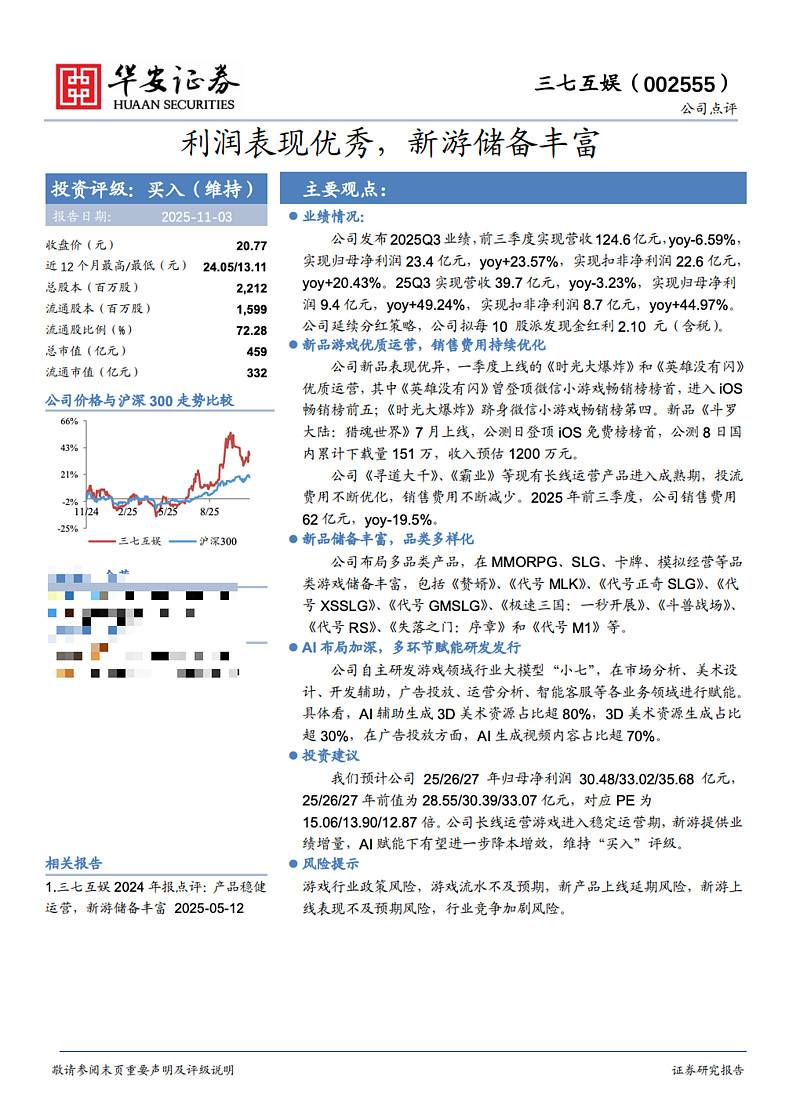 研发层面,公司构建了差异化题材立项、工业化管线、AI应用及人才孵化四大核心能力,自研产品储备超10款。AI技术应用广泛,渗透率超90%,显著提升研发与发行效率。投资聚焦游戏研发CP及AI公司,以实现业务协同。