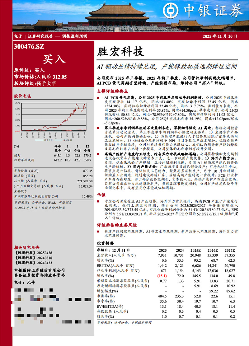 公司是全球领先的PCB制造商,坚定拥抱AI浪潮,已成为国内外头部科技企业在AI算力、数据中心等领域的关键合作伙伴。2025年,公司高端产品实现大规模量产,产品结构向高价值、高技术方向升级,带动业绩高速增长。