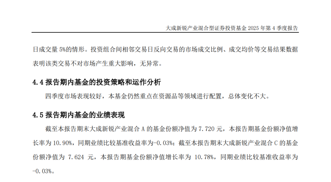 韩创的季报一如既往的非常简单,只有一句话:“四季度市场表现较好,本基金仍然重点在资源品等领域进行配置,总体变化不大”。