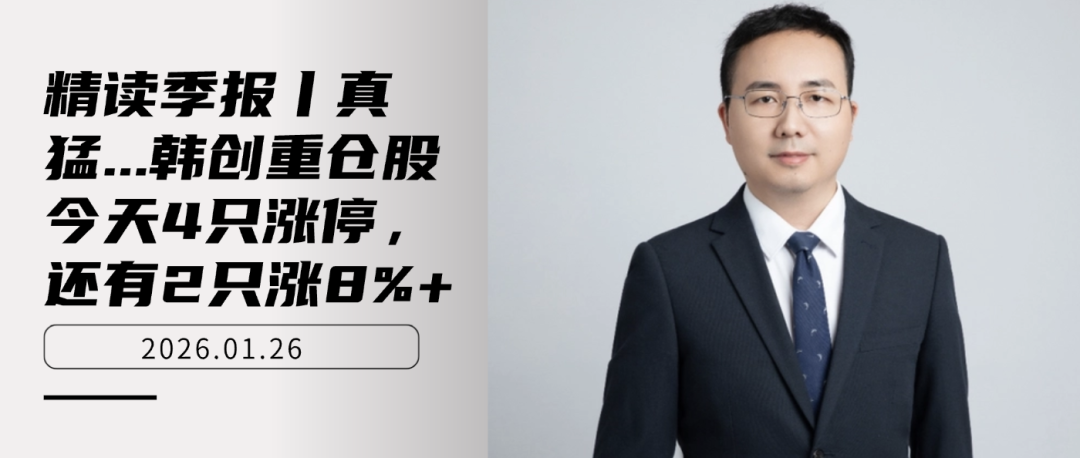今天我们解读的基金经理是韩创,他的重仓股今天有4只股票涨停,2只股票涨超8%+,实在太猛了!