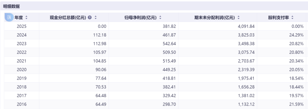 自2020年开始,每年保持20%左右的股利分红率,5%左右股息率,近3年累计现金分红高达331亿元。