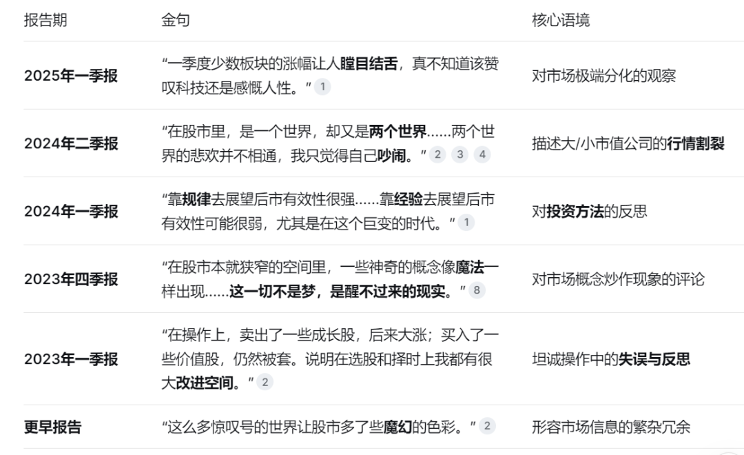 徐彦的季报以充满哲思和个人风格的文字而闻名。