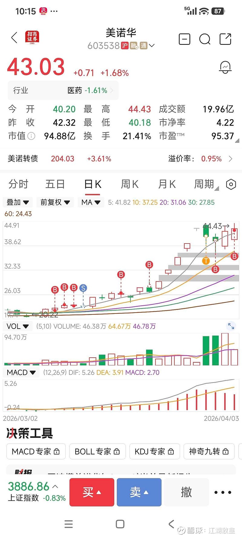 $美诺华(SH603538)$ 开盘补回了最后一笔,又回到满仓满融的状态了,成本24.5,准备锁仓了,如果美诺华的减肥药能成功,向上还有几倍的空间,就算最后逻辑证伪大不了回撤20个点利润止盈,盈亏比还是非常高的,反正出去买别的也是挨打的几率大
