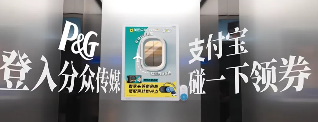 最近比较有意思的一个广告,没想到来自于P&G也就是宝洁公司。这个广告是和美团闪购联合发布的,但是呢同时接入了支付宝碰一碰。