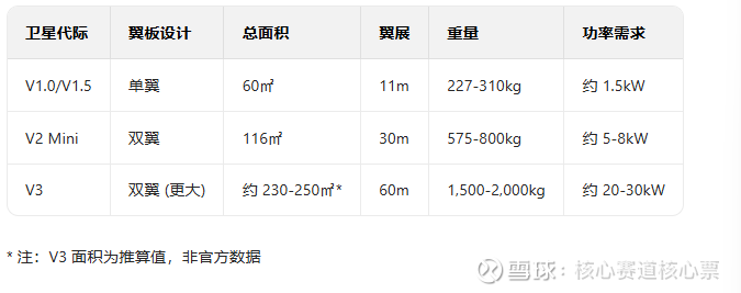 功率需求激增:V2 Mini 通信容量是 V1.5 的 4 倍,V3 又提升 10 倍,相控阵天线 T/R 组件数量从数百增至数千,功耗大幅提升