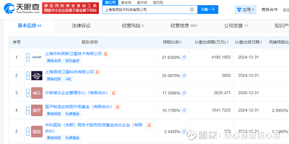 二、格思航天的大股东是:上海中科辰新卫星技术有限公司,上海垣信卫星持有25%股权。