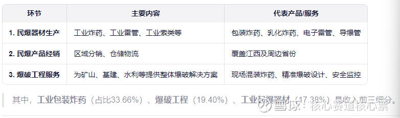 国泰集团的民爆业务已形成完整的民爆一体化产业链,主要包括三大环节: