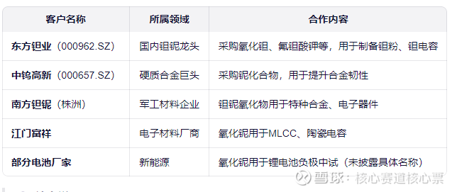 拓泓新材(控股子公司):年产能 500吨 钽铌化合物;主要产品:冶金级氧化钽、氟钽酸钾、普通氧化铌,具备电子级/独石氧化铌生产能力。