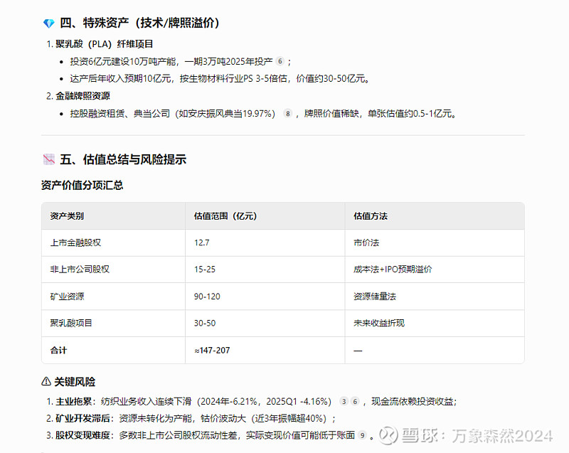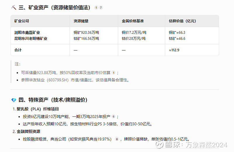 ---------------------------------------------------------------以下AI分析,抛开估值不看,确实是有这些股权、矿产经营权等。