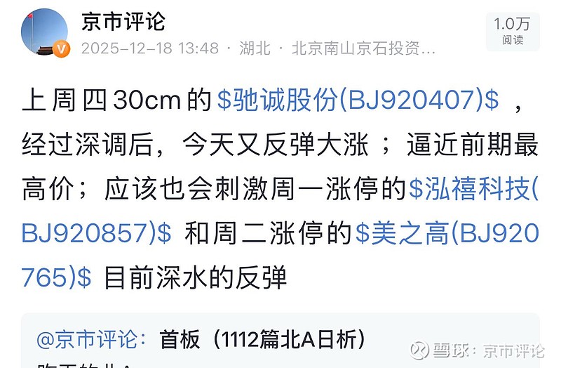 也直接推动了$泓禧科技(BJ920857)$ 的二次反弹