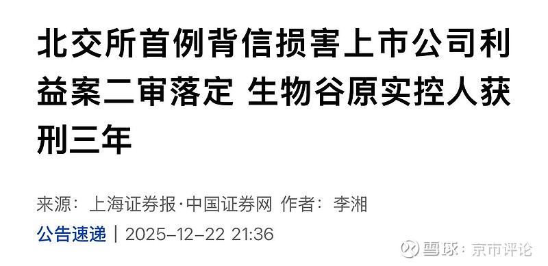 12月22日晚间,生物谷发布公告披露,近日,云南省高级人民法院作出终审裁定,驳回上诉,维持原判,$生物谷(BJ920266)$ 原实际控制人林艳和获刑三年,并处罚金500万元;原财务总监贺元获刑一年六个月,并处罚金200万元。
