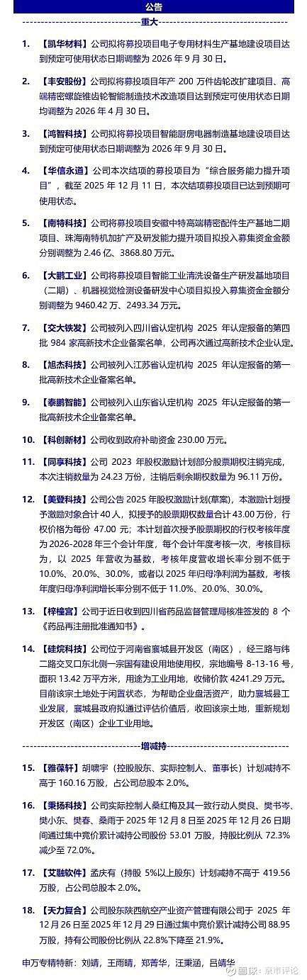 会转发申万宏源专精特新团队每晚整理的北交所公告整理图