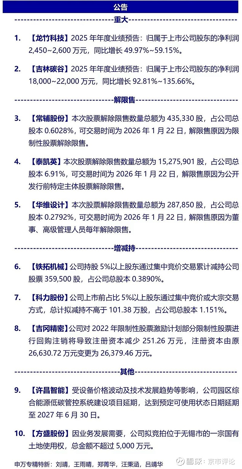 昨晚又有龙竹科技$吉林碳谷(BJ920077)$ 2家业绩预告报喜