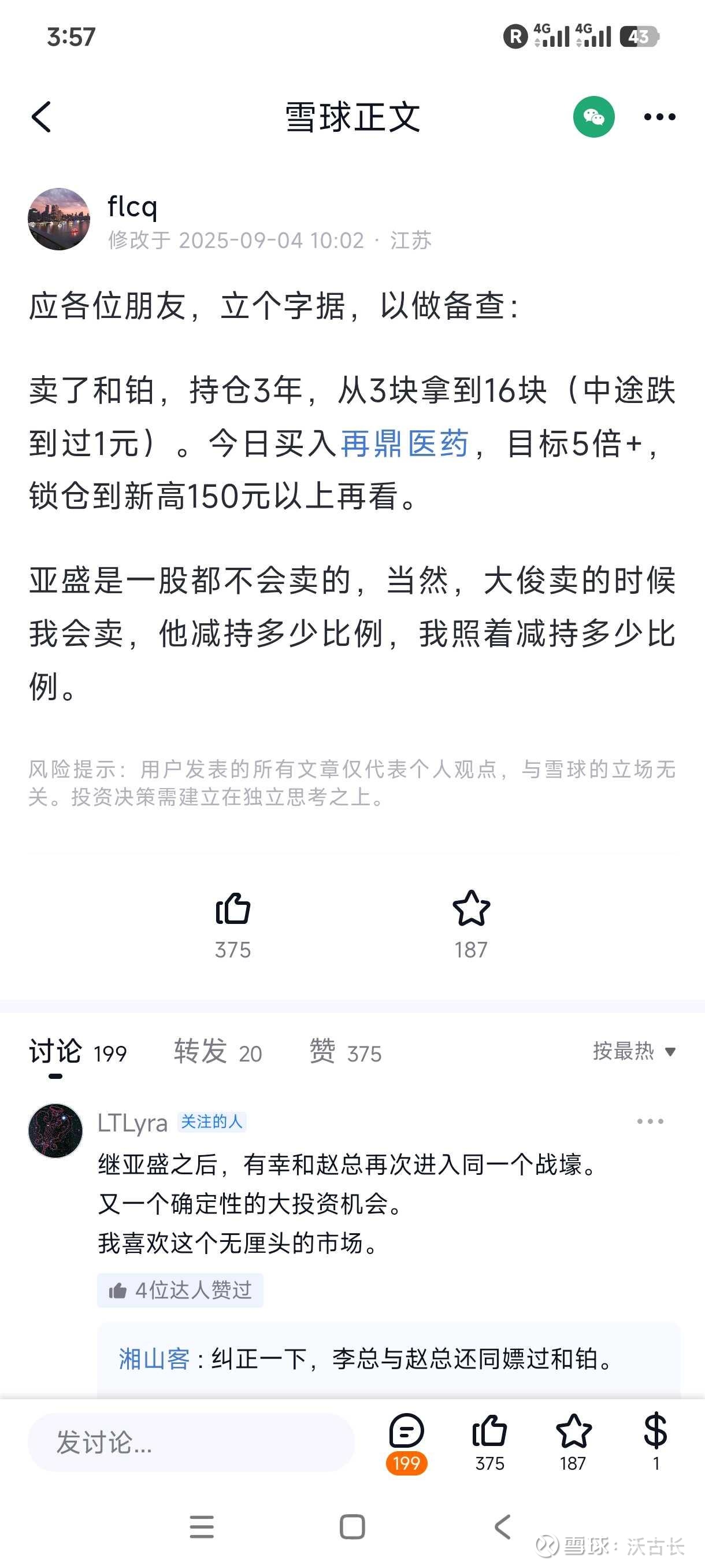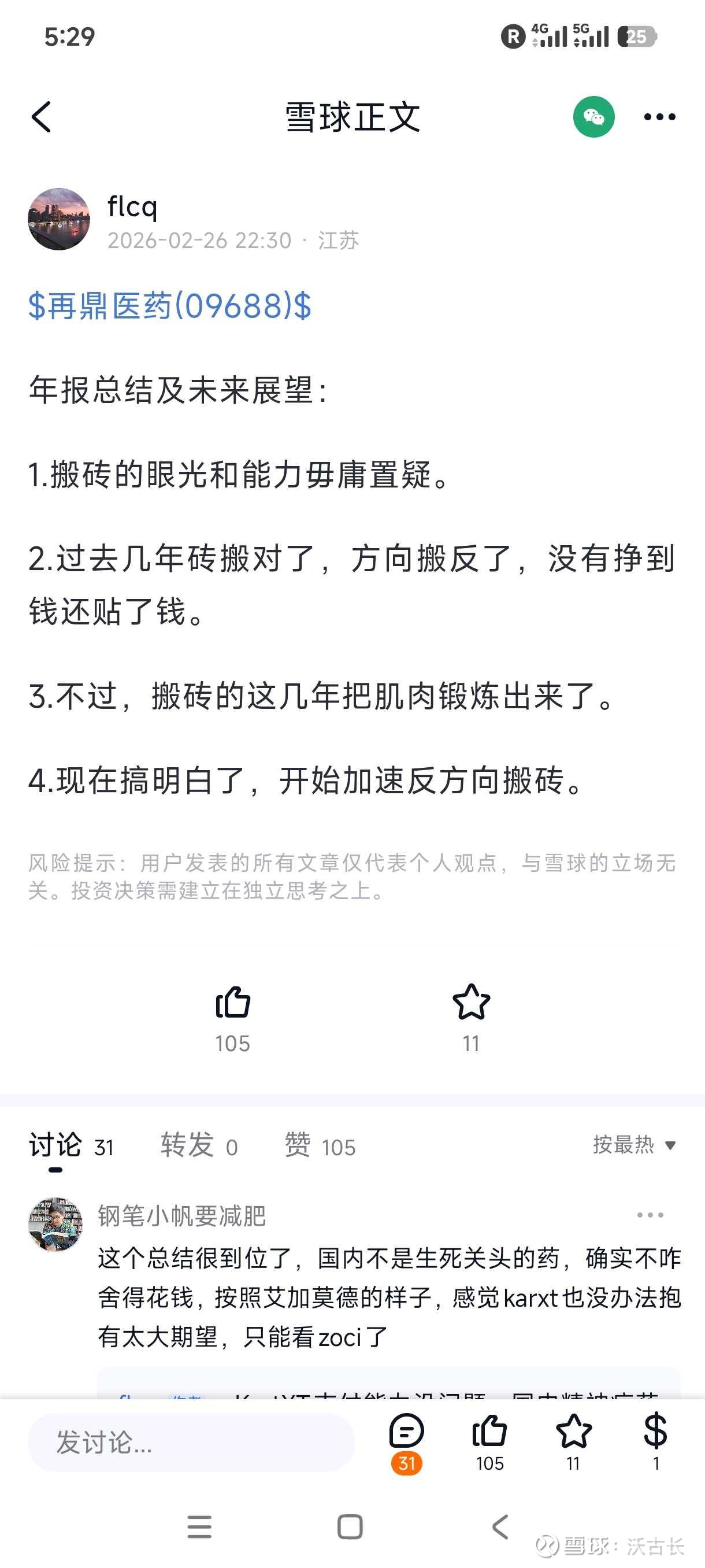 这种现象本质上是精神传销,用看似专业的分析制造权威感,吹再鼎的时候用锁仓到150元的大饼麻痹神经,再通过知识星球收费变现。当贝玛妥珠单抗失败、股价暴跌时,他轻描淡写的方向反了,现在加速反向搬砖,不过是又一次收割信徒的话术。