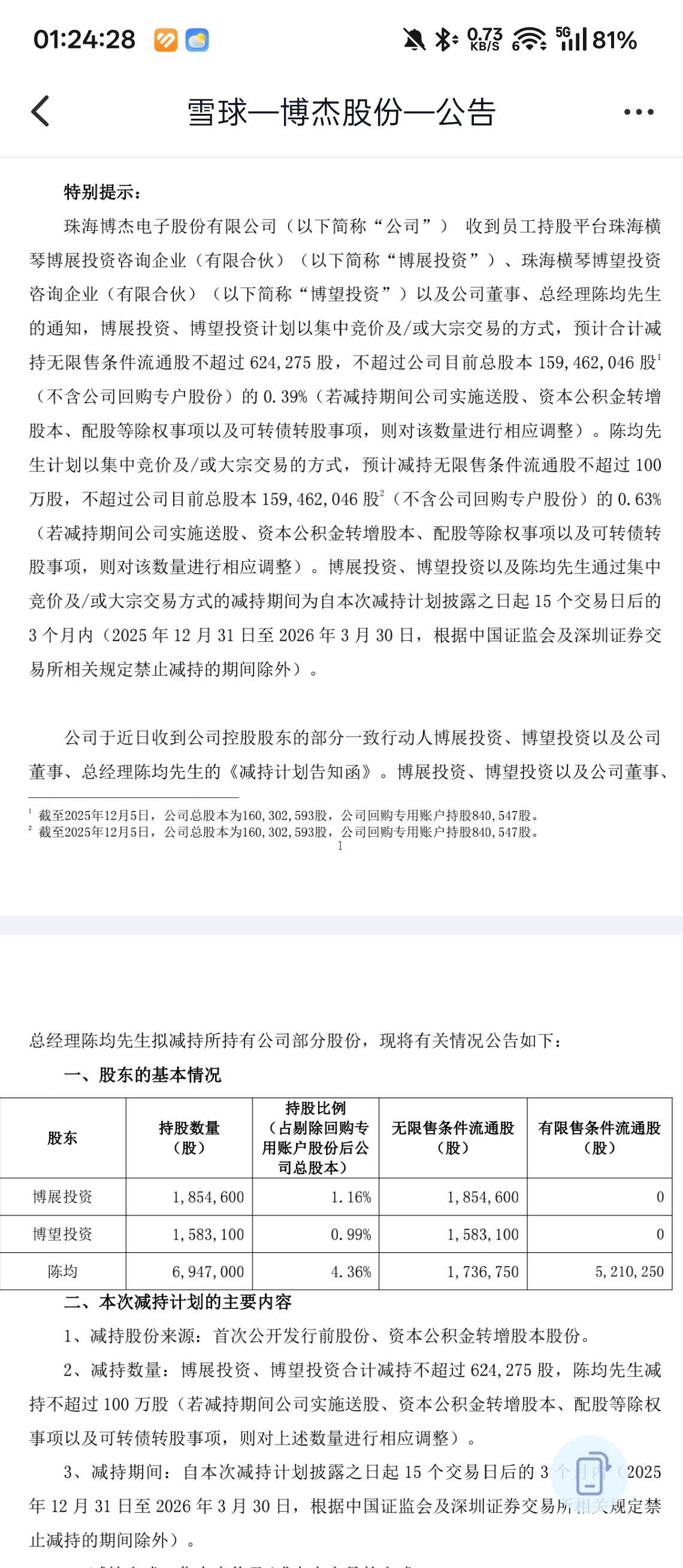 另外补充一下:博展跟博望虽然都是员工持股平台,但董事长在博展持股占67.94%,博望占17.39%,都是绝对的第一大持股股东。
