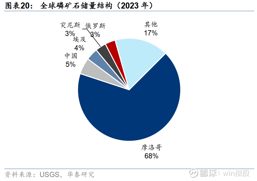 全球磷矿石储量约720亿吨,我国查明磷矿储量34.41亿吨(数据来源:自然资源部《中国矿产资源报告(2024)》),占全球5%不到,是全球第二大磷矿储量国。世界磷矿主要集中在北非、中东、北美以及我国西南的部分区域,全球磷矿资源储量丰富,但分布严重不均衡,致使资源稀缺属性凸显。