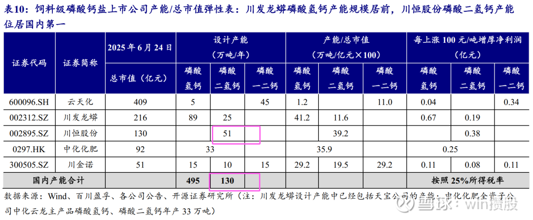 ③川恒股份磷酸二氢钙产能51万吨/年,市占率约40%排第一