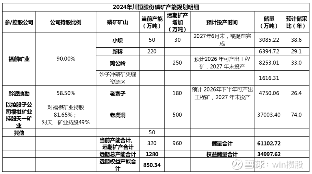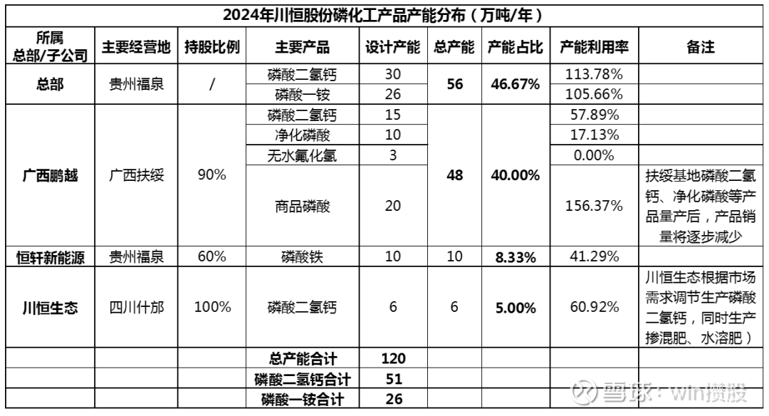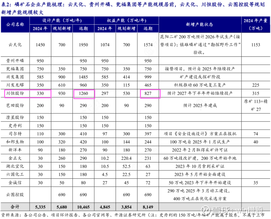2024年川恒股份磷矿产能320余万吨,在国内市占率约3%排前十。