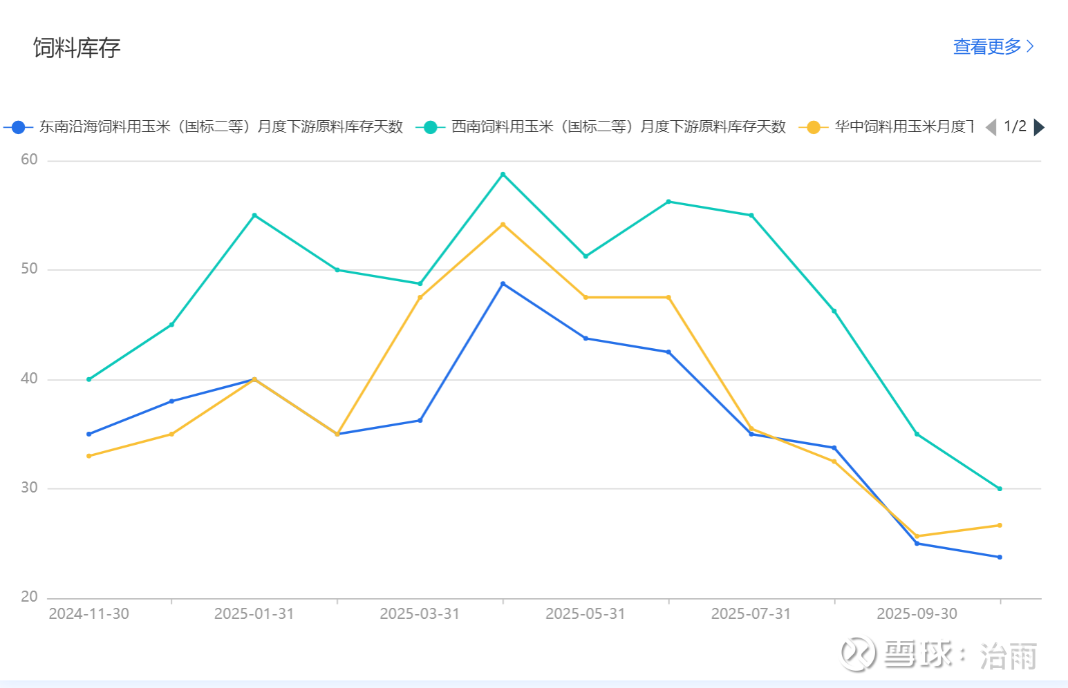 首先就是天气了,看天气预报,2025年11月16日东北地区将经历第一次寒潮平均降温6~12度,11月25日东北地区将再次经历寒潮,平均气温再降,从而使东北地区进入平均零下-10度以下的封冻模式,寒冷干燥的天气一方面有利于粮食的储存,另一方面也使得大家一起猫冬,不卖了,贵贱不卖了,躲在屋子里过完年再说。天气变化,使得东北的农民群体天然的就在特点时间点具备共识可能。其实往年东北的气候特点也是一样的,为何今年就不同,就值得关注?咱们前面分析过,往年华北大量的玉米可以正常上市销售,东北纵使不卖粮大家也不会缺粮。而今年全国玉米都在关注东北呢,东北的共识,农民的心态就显得尤为重要了。
