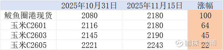 6、这不是短期惜售,而是共识逆转,这波上涨来的太快,太突然,太不符合经验、太不符合认知惯性,所以资本市场一时还没有反应归来,明明是收获季节收粮高峰期,却还上涨,这不合理,所以做空!空起来!期货盘面上的价格能说明一切问题,简言之:最近两周来,鲅鱼圈港现货上涨100元,玉米2601合约上涨64、玉米2603上涨45、玉米2605上涨22元,见下图: