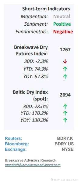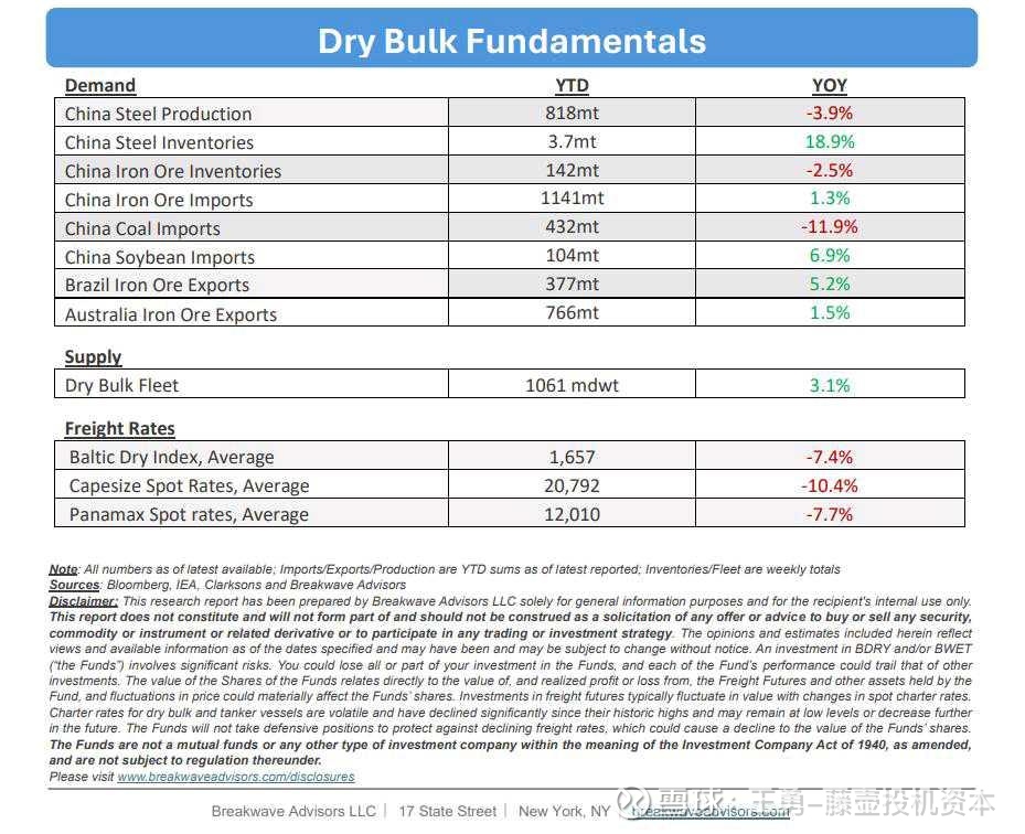 在年度“淡水河谷日”活动上,淡水河谷预计未来五年全球铁矿石海运贸易量将大体保持平稳。该公司指出,中国铁矿石需求将出现萎缩,同时自然资源枯竭问题也会制约铁矿石出口量增长。不过,西非铁矿石发运量的增加,以及以中东地区为主的温和需求增长,或将部分抵消上述减量。铁矿石价格目前持续徘徊在每吨100美元附近,这一价格水平似乎是平衡矿山生产效益与钢厂利润的均衡点。但考虑到铁矿石供应增量将至,且库存维持在同比基本持平的充裕水平,我们对铁矿石远期价格走势持谨慎态度。目前,巴西至中国航线的海运费占铁矿石到岸成本的比重约为25%,处于历史区间的高位。我们认为,铁矿石价格若出现任何下行波动,都可能对海运运价形成额外压力。铁矿石价格走低会削弱矿企议价能力,促使其优先保量而非保价,进而可能导致海运货流量下降。
