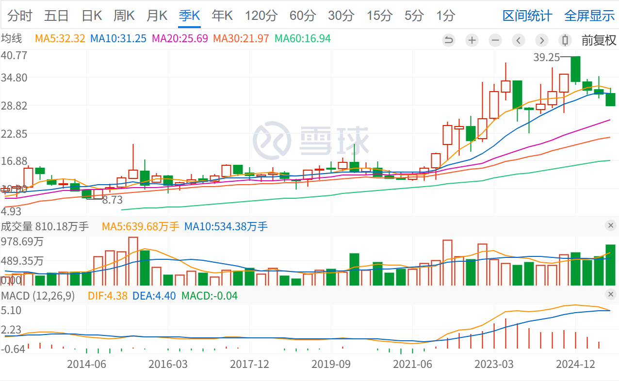 从季线上看,已经连跌四个季度了,这在000999的历史上也极为罕见!下一个支撑位差不多也到20季均线25.69元了也是就还要再跌10.31%