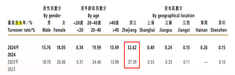 也难怪它的员工流失率高达34%左右。它报表里按性别只有17%左右,我昨天理解成那总的也是17%左右比同行普遍20%多以上要好,结果仔细按地区看发现不对。