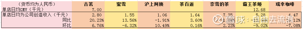 注意霸王和古茗刚好是两家报告了GMV数据的企业,霸王的单店GMV就高很多。