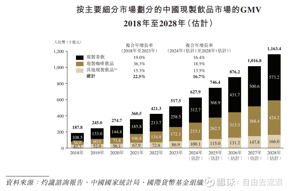 截至目前有多家现制奶茶在香港、美国上市,根据咨询公司的行业前景研报,预期行业未来几年还有颇为诱人的成长空间: