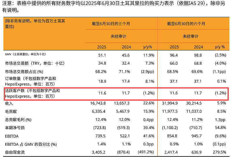 这家目前还是上市公司$D-MARKET Electronic(HEPS)$,有报表,按考虑了通货膨胀的数据,二季度同比增长还可以,但是上半年数据不乐观(说明一季度很差),而这里面最重要的指标活跃用户数,在持续同比下滑。。。这是个非常大的问题。