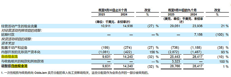 在每个报告期末,公司将重新计量OddsJam收购或有对价的公允价值。截至2025年9月30日止的三个月和九个月期间,OddsJam收购或有对价的公允价值损失分别为7,531k美元和29,163k美元。这个收购完就开始大额减值,说明资产的盈利质量还是有问题的。进一步,是不是管理层的水平还是有问题的?