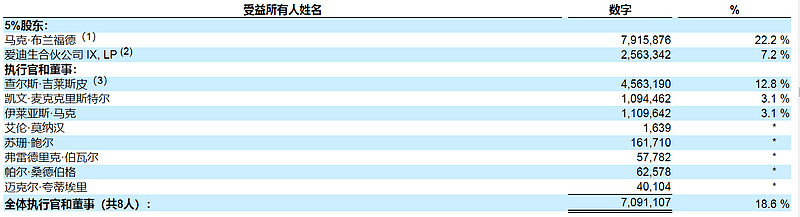 管理层的持股比例还不少,列表里的最大股东布兰福德。