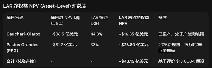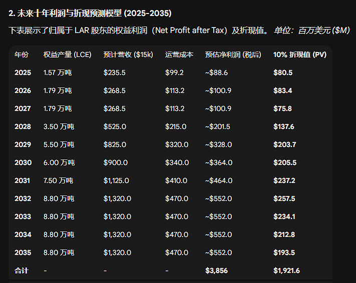$Lithium Argentina(LAR)$ 按碳酸锂15000美金/吨,人民币10.5万左右测算lar未来十年权益产能对应的利润。