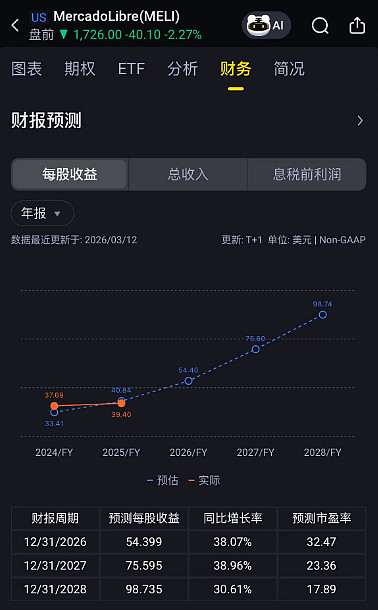 $MercadoLibre(MELI)$ 印象里meli很贵,大几十倍市盈率。但今天看到富途里meli的自由现金流数据,菊花一紧,这超过100亿自由现金流,800多亿市值,那不是对应不到10倍?有这好事?