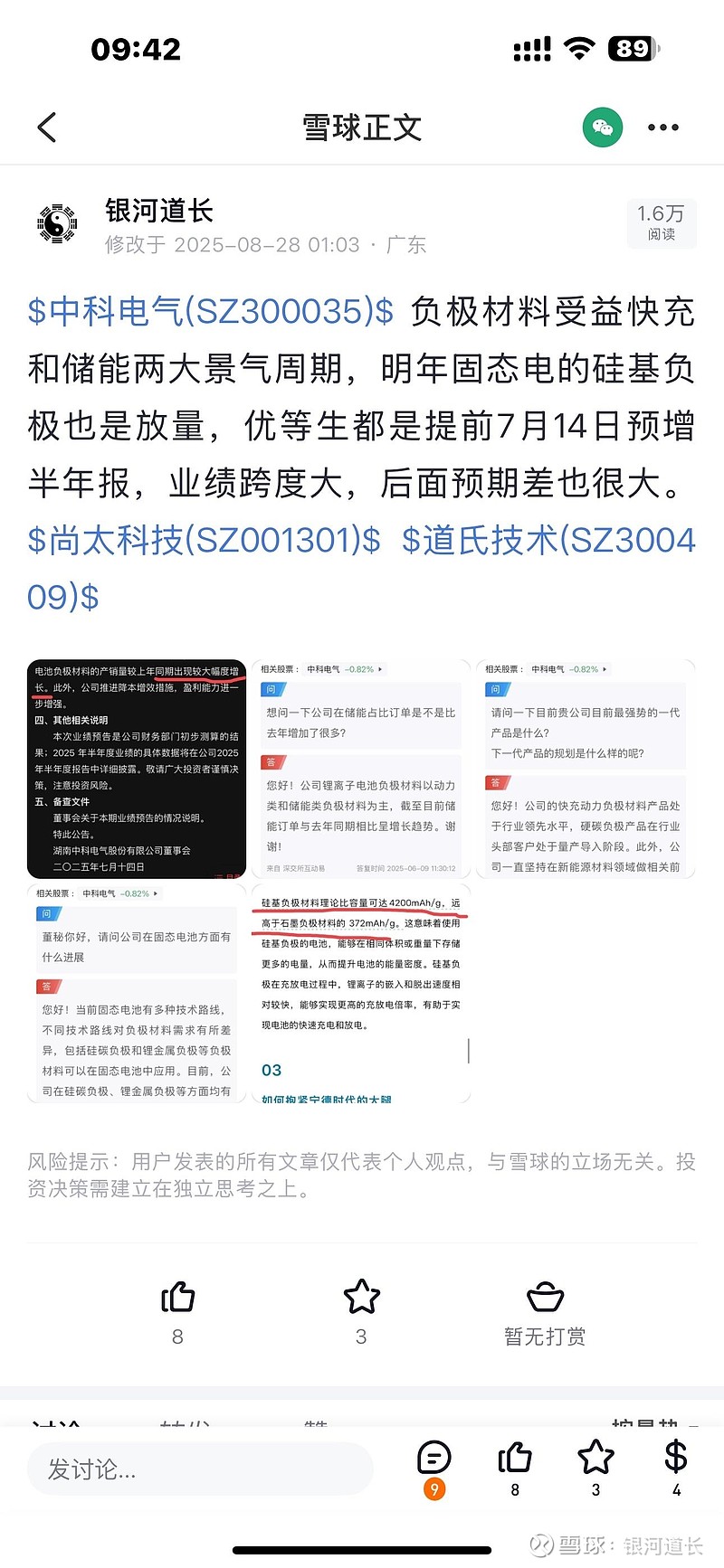 当下国内外数据中心疯狂建设和新能源快充渗透率双重高增背景下,个人认为中科电气负极材料在储能,快充和固态电池三个领域的带动下企业实现高增长。$中科电气(SZ300035)$ $尚太科技(SZ001301)$ $宁德时代(SZ300750)$