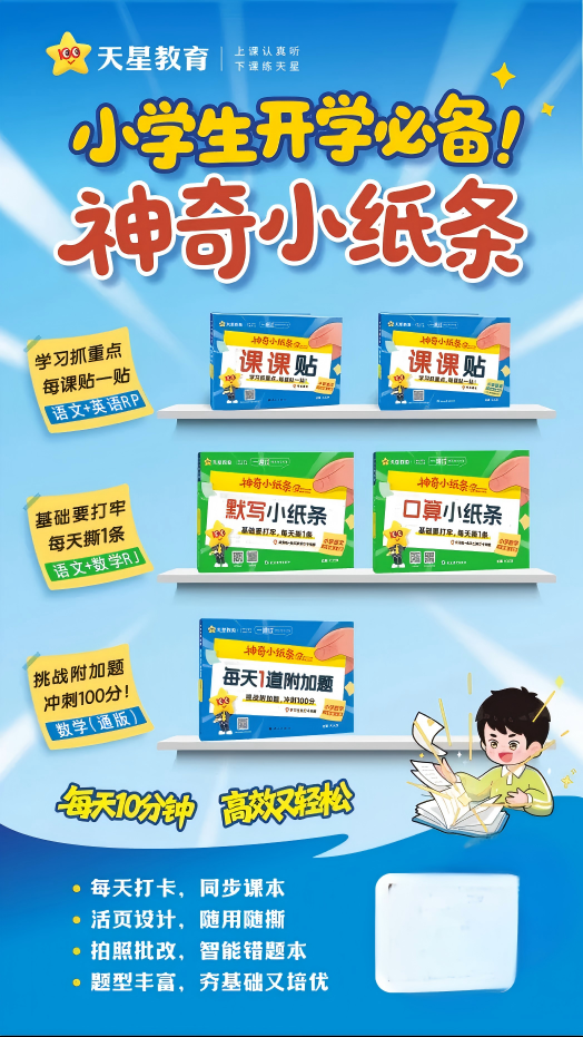 天星教育能打造出这样的现象级产品,与其深厚的研发积淀密不可分。作为年策划图书超2600种的教育出版巨头,天星教育拥有近千人的高素质研发团队,更联动全国特、高级教师组成人数过万的专家编委团。这种人才密度,确保了每一本教辅、每一款产品都经过“内容科学性、教学适配性、学生易用性”的三重打磨。“神奇小纸条”的每一处设计,都经过对学生学习行为的深度调研:将核心考点、易错题型、公式定理等浓缩于小纸条,让学生在预习、复习、刷题时能“随手抓取”关键知识,实现学习效率的倍增。