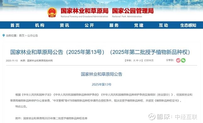 近日,国家林业和草原局2025年第二批授予植物新品种权公告正式发布,由金埔园林股份有限公司自主培育的女贞属新品种“埔金”(品种权号:20250591)成功获批,标志着公司在园林植物自主育种领域实现新突破,创新实力获权威认可。