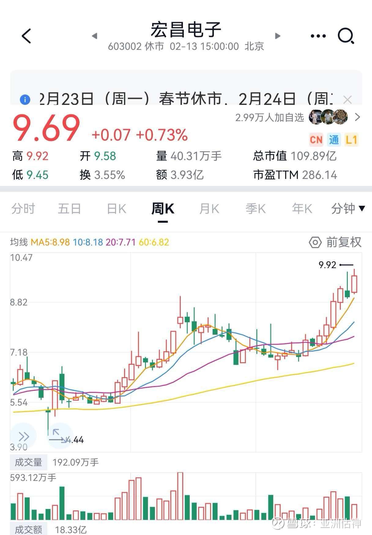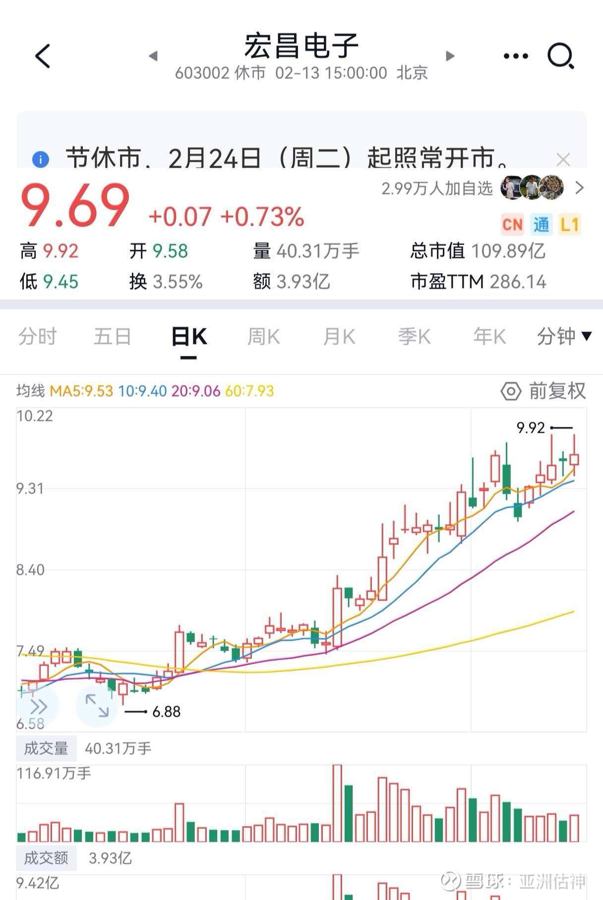 宏昌电子经过艰苦交易,亚洲估神已做到成本负-6元,有图有真相。