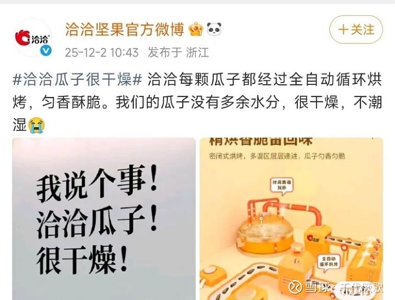 $洽洽食品(SZ002557)$ 诸位,这不是一件小事,还有人叫道歉,请问做错了什么吗,瓜子保持干燥哪里都没有错,可怕的是这些饭圈文化引导舆论,破坏国民洽洽形象。今天道歉明天就要骑在头上了,主子都没说话,奴才先来了。大清早亡了,某些粉丝刻意诋毁洽洽,真是毫无下限,不愧是臭名昭著的饭圈!