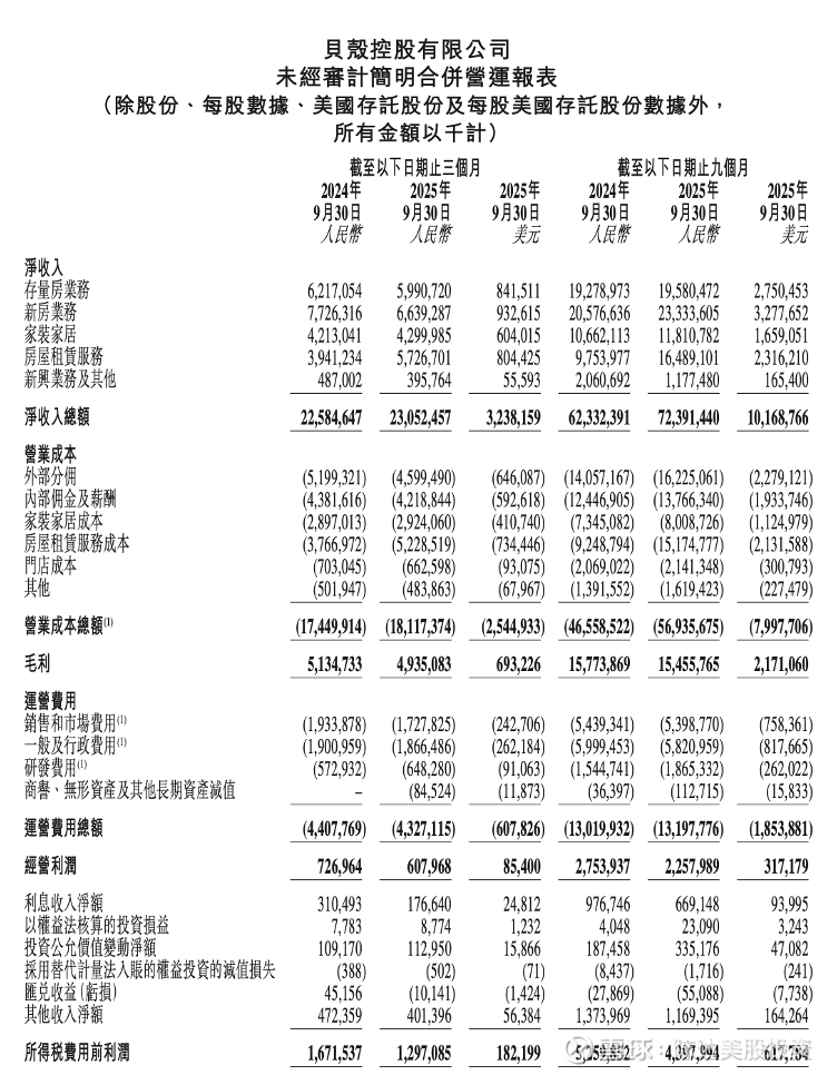 然后看看贝壳的三季报,聊聊我眼里的下行期行业,一个有“安全边际”的公司长什么样:
