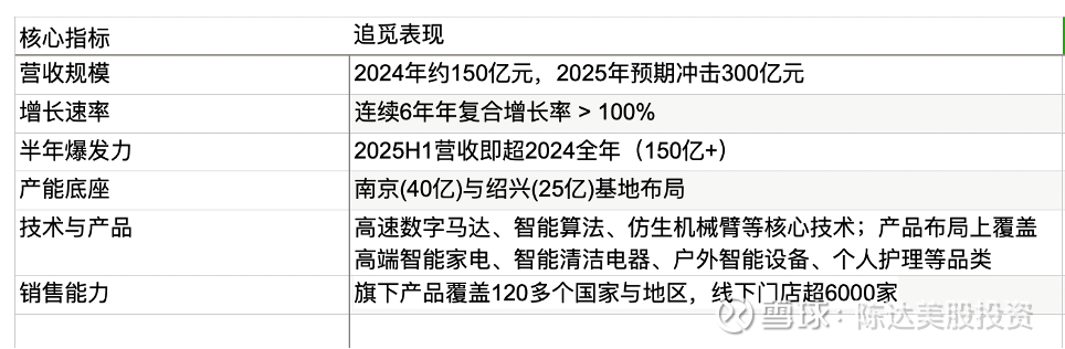 结合一级市场的一些信息,以及二级市场的可比公司的公开信息,我从投资人的角度,最关注的主要的是追觅高增长。这个增长在业内是比较罕见的(其连续六年收入翻倍),要远高于其可比公司。