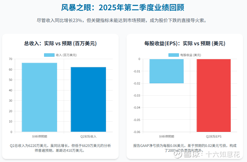 此次即时且显著市场反应的核心驱动因素是公司第二季度收入6220万美元,低于分析师普遍预期的6629万美元,以及每股0.06美元的GAAP净亏损,这比预期的每股0.02美元的亏损更为严重 。