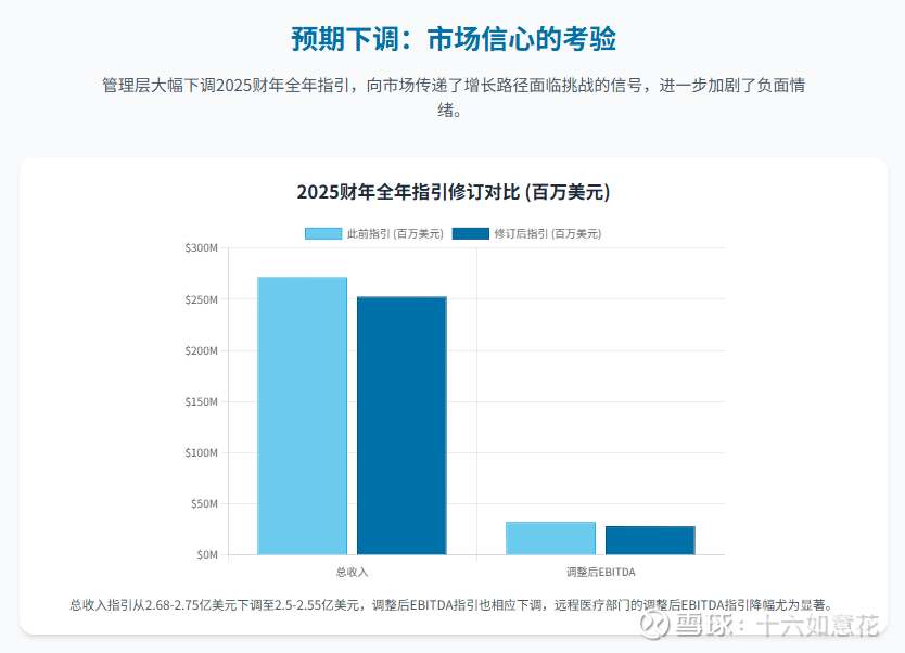 更糟糕的是,管理层大幅下调了2025财年全年指引。总收入指引从之前的2.68亿至2.75亿美元下调至2.5亿至2.55亿美元,调整后EBITDA指引从3100万至3300万美元下调至2700万至2900万美元 。远程医疗部门的调整后EBITDA指引也从2100万美元大幅下调至1400万至1600万美元 。