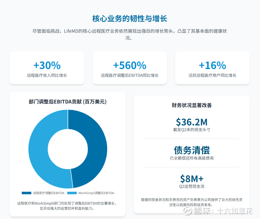 现金状况和债务: 公司在2025年第二季度末拥有3620万美元的稳健现金头寸 。一个重要的财务亮点是,在季度结束后,所有高级债务已全额偿还,有效消除了其资产负债表上的这一负债 。此外,LifeMD在2025年第二季度产生了超过800万美元的强劲运营现金流 。