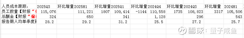 腾讯控股25Q3相比于25H1的员工数量增长3855人,主要还是腾讯将在游戏和技术平台(包括与AI相关的人员)增加,腾讯几年前就已经完成了相当程度的组织优化,目前的组织非常高效,AI应用让团队能够做更多,而不是为了降低成本。