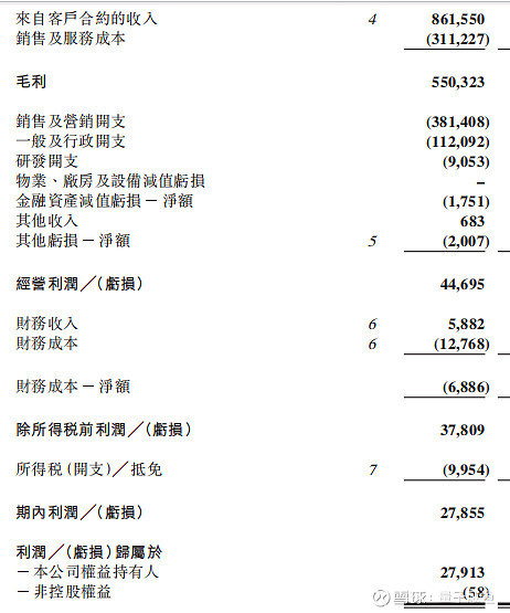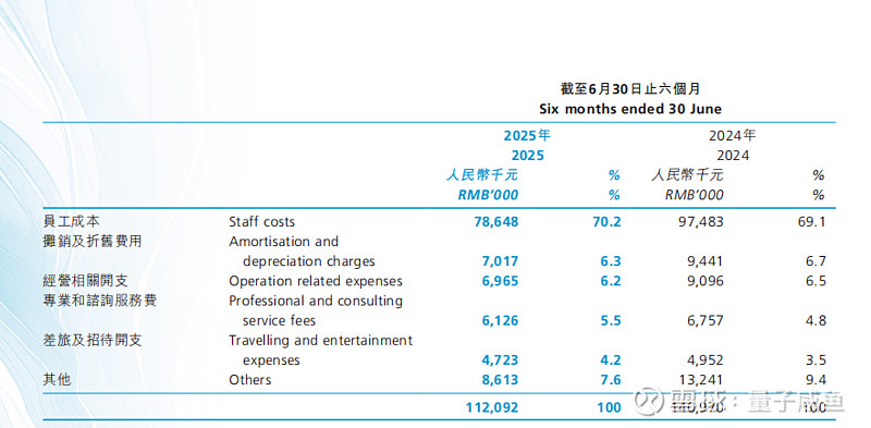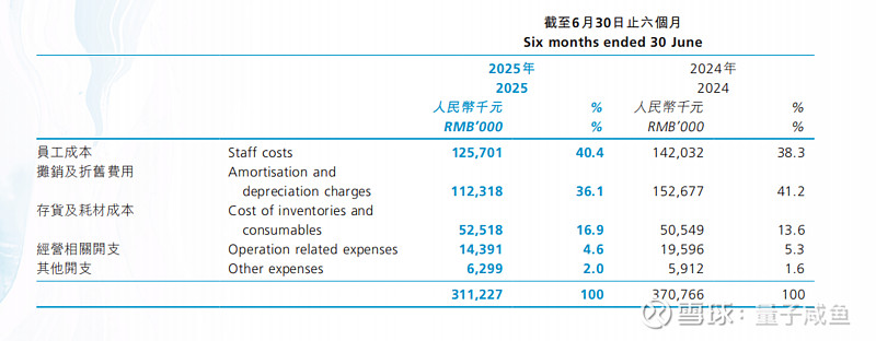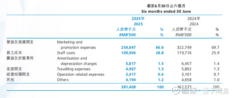 可以看到雍禾医疗25H1财报基本就是这么几块:首先收入8.6155亿(如果按照6%增值税率计算,需要缴纳增值税4877万),营业成本(销售及服务成本)3.11227亿,销售及营销开支(相当于A股三费中的销售费用)3.81408亿,一般及行政开支(相当于A股三费中的管理费用)1.12092亿,研发费用0.09053亿,加上其他七七八八,税前利润3780.9万,所得税995.4万(所得税率26.33%,算是正常水平),净利润2785.5万,然后看下大头的几块费用组成: