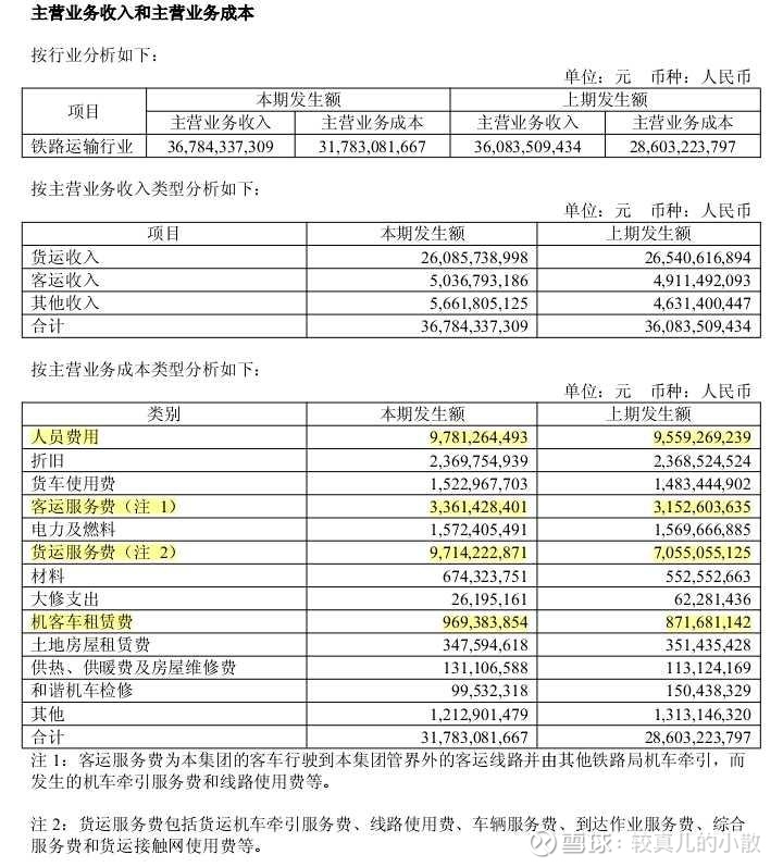 但我个人觉得还有另一个原因:《大秦客运做越多亏越多》。它一直试图隐瞒这一点。今年上半年客运收入同比增长2.6%,同比增长了一个多亿。但从成本分析里可以看出“客运服务费”同比增长2亿;“机客车租赁费”同比增长1亿;成本中“人员费用”同比增长2亿多,我估计主要也是因为客运业务增长。(上图,成本分析)