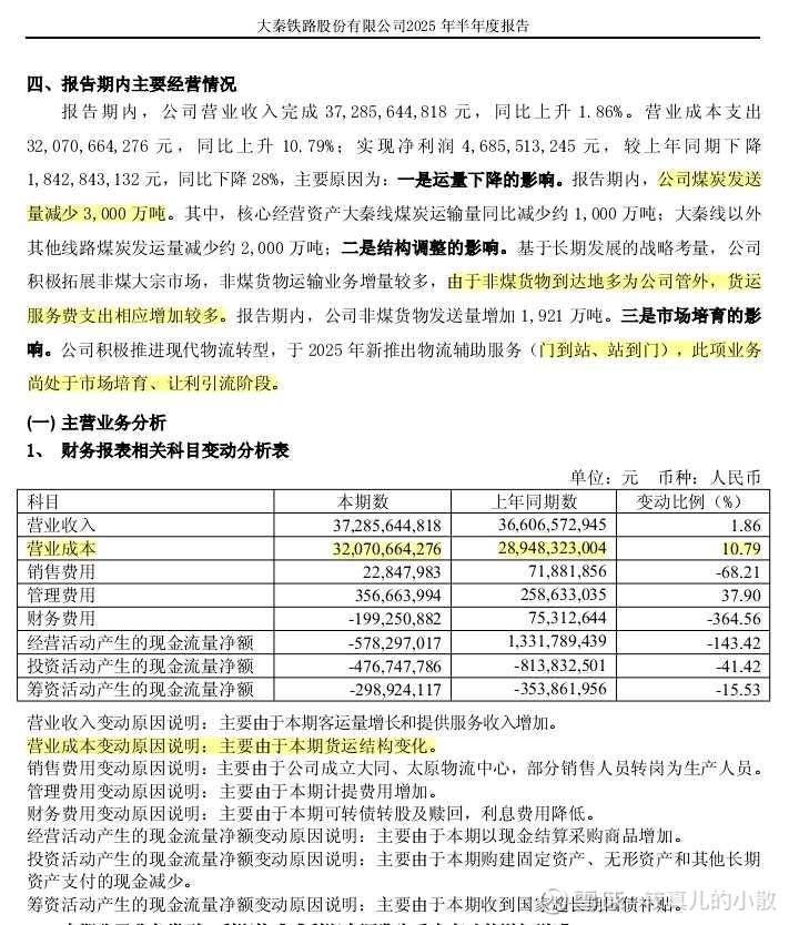 $大秦铁路(SH601006)$ 业绩难看不算突然,大家应该早有预料。2025年上半年,大秦的营收373亿,同比微增1.86%;净利润同比大降30%,只有41亿。