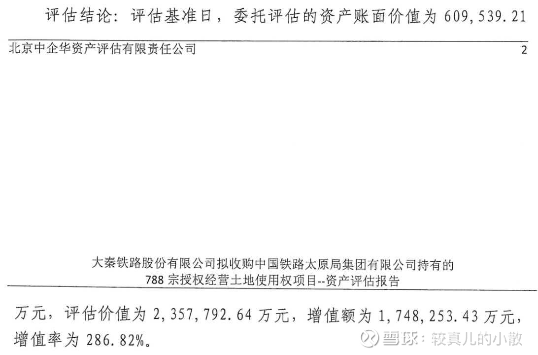 更离谱的是,现在又要把这些资产下的土地再卖一次给大秦,而且估值从账面价值61亿增长到257亿,增值率287%(下图)。